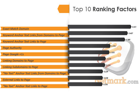 Les mots qui composent le lien pointant vers une page renseignent sur le contenu de celle-ci. Il est donc recommandé d’utiliser du texte explicite. En plus, l’attribut Title pour les liens semble avoir son importance. Il s’agit certainement de la tactique qui a le plus de poids comme le révèlent les différents sondages d’opinion. Voici le top 10 de l’étude Netmark :