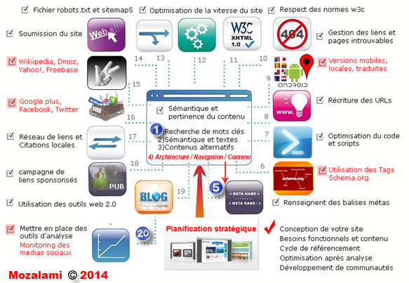 Cet article est une nouvelle mouture des précédentes versions que j’avais réalisées auparavant, en 2010 (Référencement Google SEO de site en 15 étapes) et en 2012 (Bonnes pratiques SEO en 20 étapes). Le but est de vous aider à y voir clair au niveau des bonnes pratiques SEO pour référencer son site. Les étapes décrites ici sont cruciales pour réussir une campagne SEO et cette analyse a été largement reprise sur la toile. J’aurais pu succomber à la tentation d’ajouter de nouvelles étapes d’optimisation mais l’essentiel est d’avoir une checklist que chaque référenceur pourra enrichir de sa propre expérience en référencement naturel SEO Google.